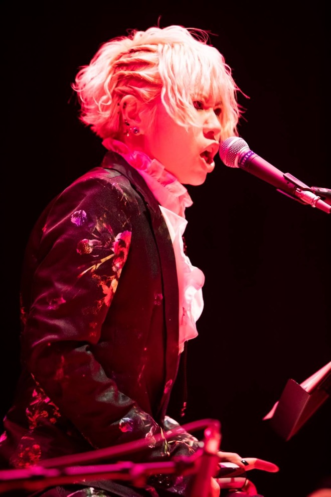 このMCから、最新アルバム収録曲「Chain Smoke」へ。真っ赤に染まる会場に鳴り響く詩。甘美な余韻に浸っていると、天を衝くようなVALSHEのロングトーンから始まったのは「Roma」。曲中の物語を切々と歌い上げるVALSHEの歌声は繊細で美しい。アコースティックギターから始まったのは「Moon-reveal & sequel-」。VALSHEの歌声は今までの楽曲とは打って変わって優しく、柔らかに包んでいく。アコースティックギターで歌われる「Moon-reveal-」、ピアノで弾き語られる「Moon-sequel-」。2曲が交わり、ライブならではの一続きの構成になっていた。