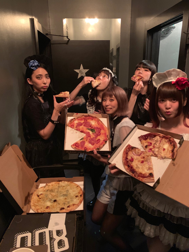▲楽屋でのピザパーティー