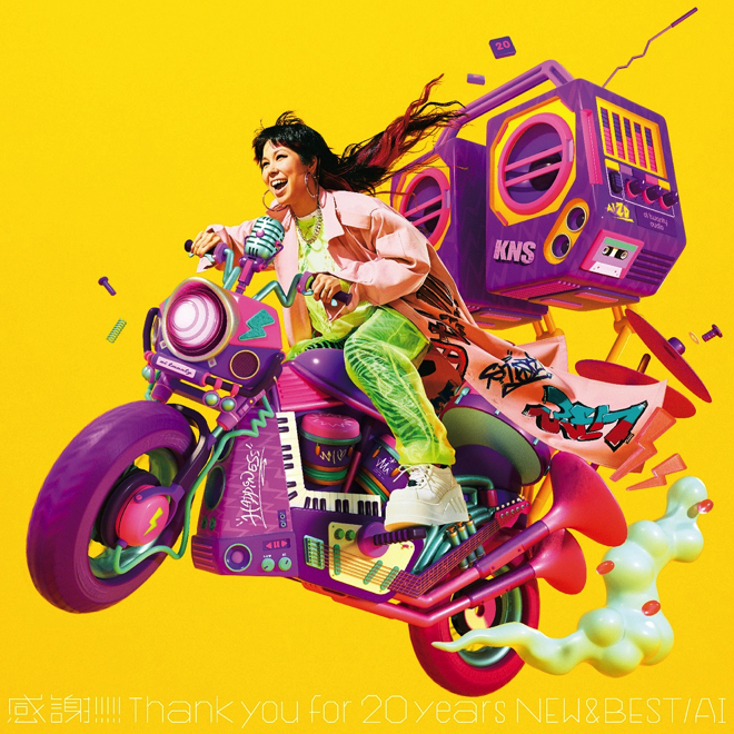 あわせて“20周年「感謝!!!!!」特設サイト”がオープンし、20周年を記念して発売されるアルバム『感謝!!!!! – Thank you for 20 years NEW & BEST-』のジャケットビジュアルも公開となった。また、SNSでもAIの20周年を盛り上げる企画がスタートする。「#AI感謝20th」のハッシュタグをつけて、AIの数々の楽曲の思い出をつぶやこう。