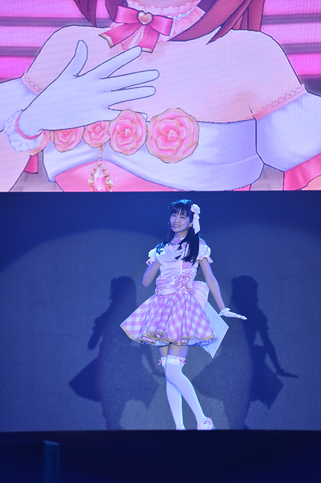 続いて、現在注目を集めている「ラブライブ!虹ヶ咲学園スクールアイドル同好会」から、上原歩夢(CV.大西亜玖璃)、桜坂しずく(CV.前田佳織里)、天王寺璃奈(CV.田中ちえ美)の3人のステージが繰り広がられ、それぞれのソロ曲を披露した。