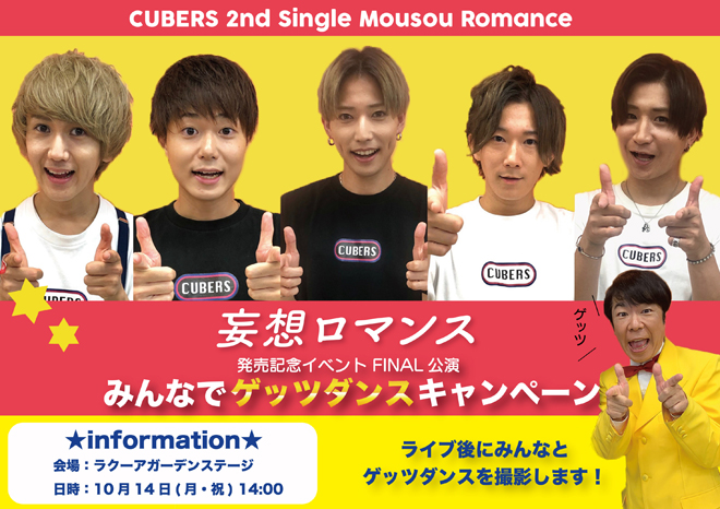 また、10月14日(月・祝)東京ドームシティ ラクーアガーデンステージにて開催される「妄想ロマンス」の発売記念イベントのファイナル限定で企画「みんなでゲッツダンスキャンペーン」が行われる。