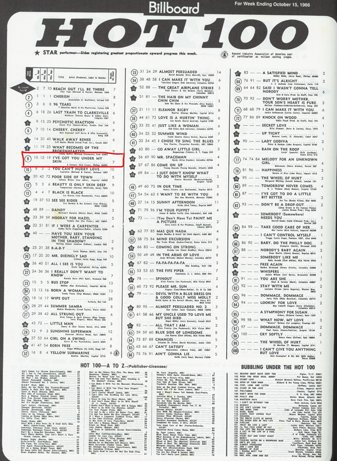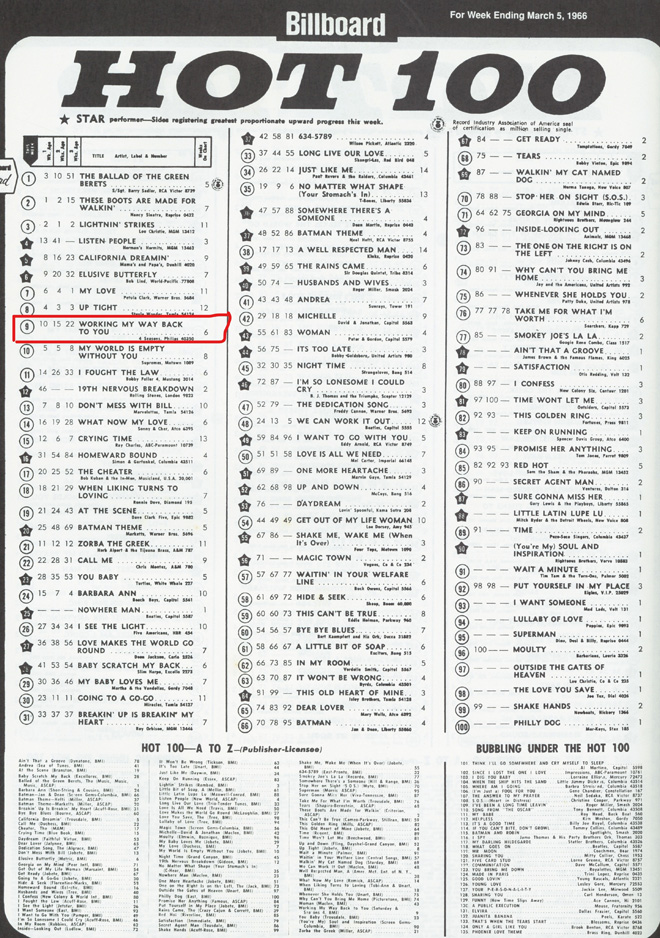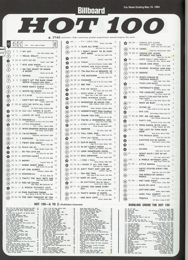 以下のランク表は『Joel Whitburn Presents The Billboard HOT100 The Sixties』(日付は明記してありません ご了承ください)