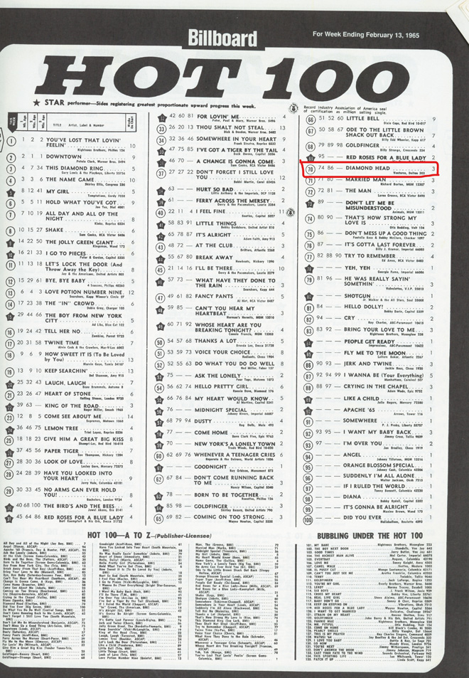 「ビッグ・サーフ」は比較的新しい16年の作品。そしてラスト・チューンはこれで決まりだ、「ダイアモンド・ヘッド」、会場全体が早手拍子で盛り上がる、もうここはエレキ大会なのだ(笑)。メンバーは客席に降りての演奏。いつもに比べてその時間が長いように感じたのは僕一人だけだろうか…。そうだ、このオレンジ色のJPシングル盤を購入したのは中2の正月だった。TBSラジオ“POPS BEST 10 ”の65年/年間チャートで6位を記録している。一方HOT100では65年1月30日86位(★)で初登場、翌週74位そして2月13日付70位が最高位。