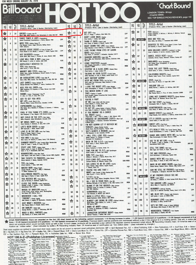 フランキーのソロ・ナンバーが続く。ソロとして最も好セールを記録した「Grease」。ジョン・トラボルタ&オリビア・ニュートン=ジョン出演の78年公開の映画『グリース』からの楽曲。勿論フランキーの歌うこの作品はオリジナル・サウンドトラックに収録。シングル・カットされHOT100では同年5月27日付69位(★)初登場、その後54位(★)→45位(★)→39位(★)→31位(★)→31位(★)→26位(★)→16位(★)→11位(★)→6位(★)→5位(★)→3位(★)→2位(★)→2位(★)そして8月26日付&9月2日付で最高位1位(8月26日付のみ★)。R&Bチャートでは40位。プラティナム・シングルを獲得している(RIAA)。