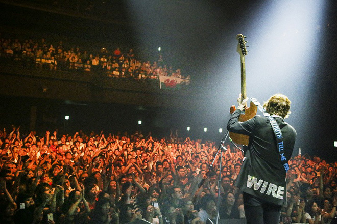 史上初の日本での開催となるラグビーのワールドカップが去る9月20日に開幕を迎え、各地で連日、熱戦が繰り広げられている。もちろんこれは日本のファンのみならず世界各国のラグビー愛好家たちにとってこの時期における最重要事項であり、今現在、母国チームやご贔屓のチームの応援のため各国のラグビー・ファンがこの国を訪れている。そんななか、3年ぶりの来日公演を行なっていたのがマニック・ストリート・プリーチャーズだ。今回はASIAN KUNG-FU GENERATIONをスペシャル・ゲストに迎えての、東京での二夜公演のみとなったが、9月26日、Zepp DiverCity Tokyoにて、その第一夜の模様を目撃した。