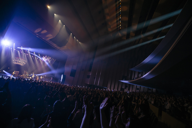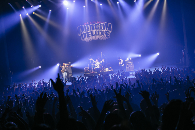 10月4日、名古屋国際会議場センチュリーホール。結成30周年アニバーサリー中のフラワーカンパニーズが、その最大の山場として、毎年地元名古屋で開催している主催イベント<DRAGON DELUXE>をスペシャルバージョンで開催。ゲストバンドはなんとスピッツ、その名も<DRAGON DELUXE DELUXE 〜30周年スペシャル〜>である。