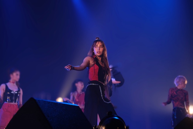 真っ赤な新衣装で登場したFAKYは「Better Without You」を披露し、最初からアクセル全開のパフォーマンスをみせつけた。ライブ中盤、FAKYの代表的バラードソング「Who We Are」、「four」を連続で披露。胸が引き裂かれるようなLil’Fangの歌声に涙を流す観客の姿もあった。今夏にリリースされたダンスシングル三部作第一弾の「GIRLS GOTTA LIVE」では、お客さんがダンスを真似するなど、会場はさらにヒートアップ。