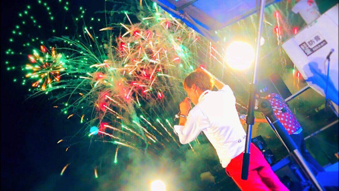 9月の頭に高知県で行われたイベント「土佐風土祭り」。まさに地元のお祭りっていう感じのイベントです。出店が出て、地元のアーティストがライブをして、色々な体験ブースなどもある。そういうイベント。このイベントの締めは、花火でした。そのフィナーレの直前がミュージック花火といって、フラチナリズムが演奏し、それに合わせて花火が上がるというテンションぶち上がりの演出でした。