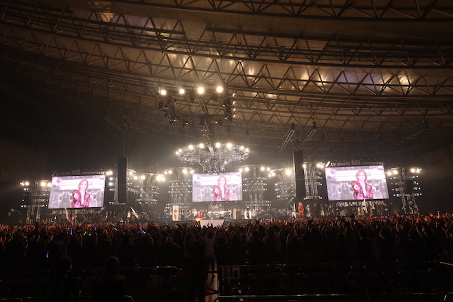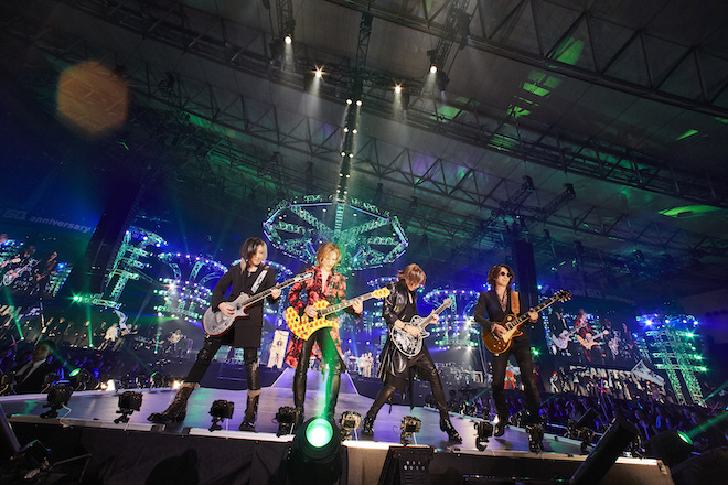 さらに「KISS THE SKY」ではSUGIZOの美しいバイオリンに合わせて、YOSHIKIが美しい歌声を披露。二人の奏でる美しい音楽に合わせ、 会場中からは大合唱が起こった。ラストにはこの日の出演バンドであったLUNA SEA、GLAY、ゴールデンボンバー、THE ORAL CIGARETTES、SCANDALのメンバーと清春が急遽登場し、それに加えてYOSHIKIの掛け声で集まった“無敵バンド”が登場。YOSHIKI、真矢による迫力のドラムと、RYUICHI、TERU、清春、鬼龍院による圧巻のボーカルで「X」を演奏し、 3年前の<VISUAL JAPAN SUMMIT>を彷彿させるビックサプライズとなった。まさにYOSHIKIにしか実現できない、フィナーレに相応しい伝説のステージだった。