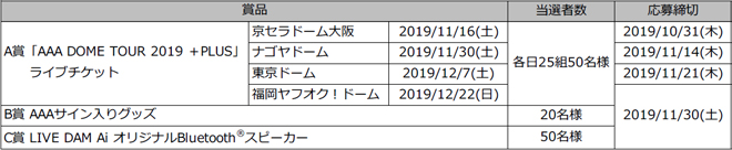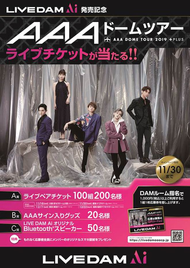 「LIVE DAM Ai発売記念「AAA DOME TOUR 2019 +PLUS」コラボキャンペーン」が10月18日から11月30日までの期間限定で開催される。
