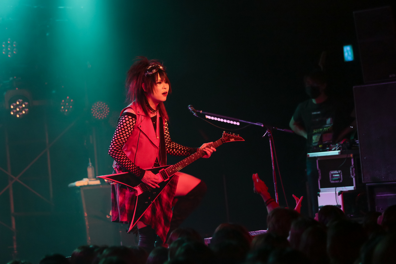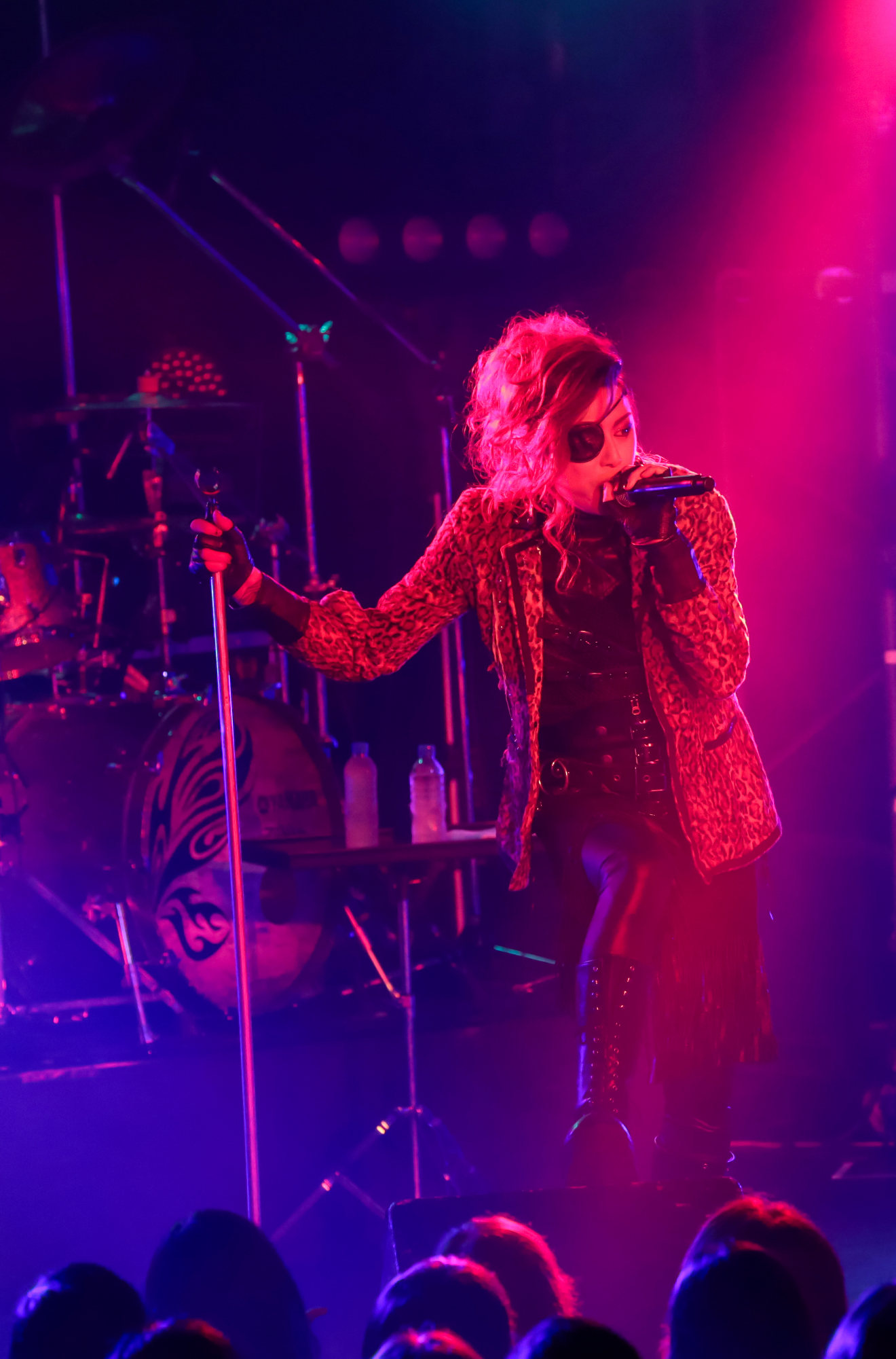 激しい音の雪崩を巻き起こすように、演奏は「ボニー&クライド」へ。何時しか僕らはボニーとクライドの関係になり、スリリングなドラマへ思いきり夢中になっていた。歪んだ音を突きつけ攻める千聖、その上でHAKUEIはなまめかしい歌声を幾重にも重ねてゆく。美しさとたおやかさを抱いた「one star」が身体を浸食しては、気持ちを熱く唸らせる。ハードエッジなロックナンバー「Lucifer~光をもたらす者~」は触れた人たちをどんどん黒い衝動の中へ引き込むような演奏だ。対照的に、HAKUEIは光を求めるように妖しく、嘆くように歌いあげた。