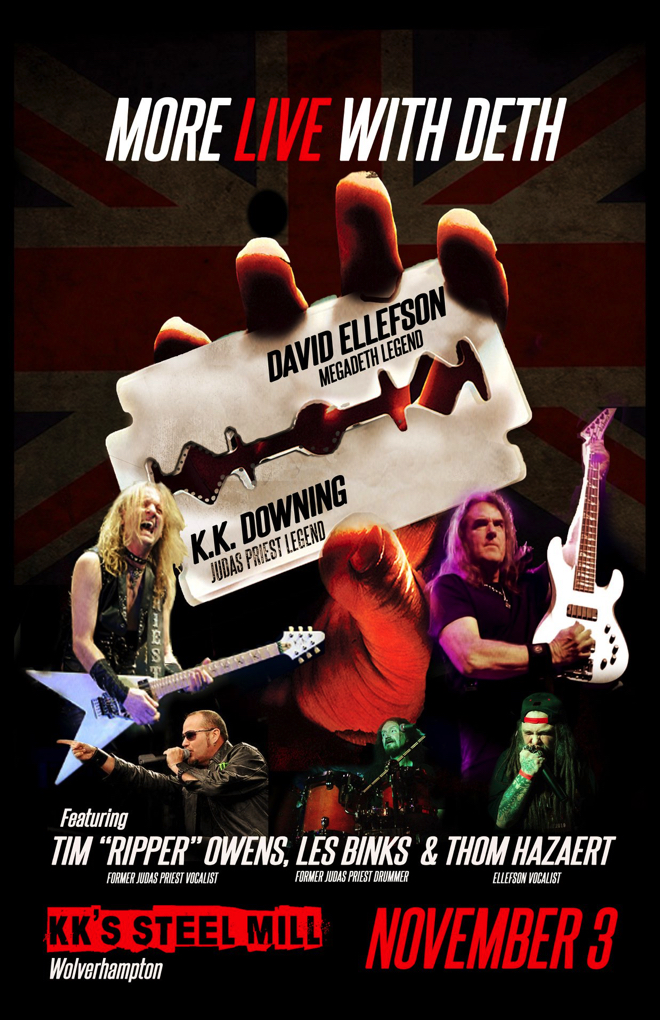 この1回限りの公演は11月3日、ダウニングが昨年、英国ウルヴァーハンプトンにオープンしたコンサート会場K.K.’s Steel Millで開かれ、元アイアン・メイデンのヴォーカリスト、ブレイズ・ベイリーがオープニング・アクトとして参加し、エレフソンのバンドSleeping Giantsがプレイした後、彼らが登場する。