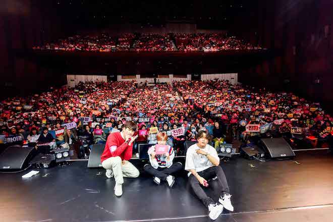 少しのインターバルを置いてライブコーナーがスタート。「JUST FOR YOU」「JERK」と2曲歌い、「今回はMCの方を迎えず僕たちだけでやりましたが、皆さんのおかげで楽しく初日を過ごせました!」とファンに感謝を伝えた。「ここから盛り上がっていきましょう!」とライブ後半は「KILLING ME」「RHYTHM TA REMIX (Rock Ver.)」「B-DAY」で一気に会場のテンションは最高潮に達し、初となる広島でのファンミーティングは大きな盛り上がりの中終了した。