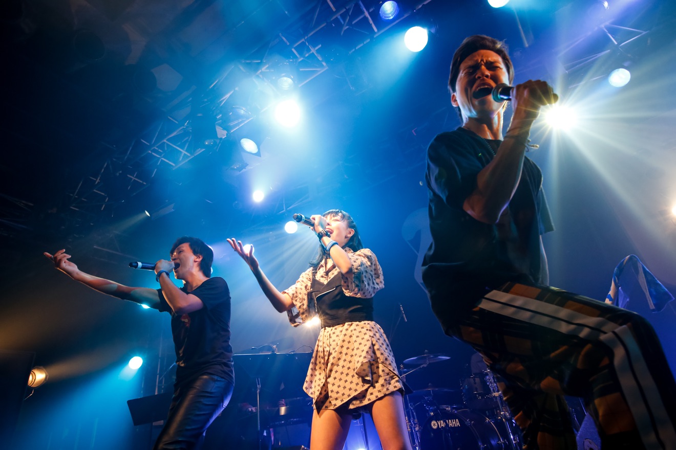 MCで前日の『U-FES.TOUR 2019 Variety 東京』の話になり、楽屋でもステージでも元気すぎる恭一郎へのツッコミが忙しくて「喉を消耗しそうになった」というとしみつだったが、ヴォーカルの調子は絶好調! 「ピエロ」「RESTART」を情熱的に歌い上げ、身も心も焚きつけられるパフォーマンスを見せてくれた。