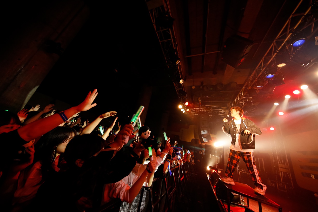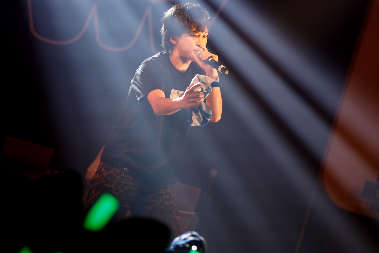 先程の「ピエロ」で歓声が沸いたことにも触れ、「出づらい出づらい! 俺は聴きたくなかったよ、みなさんのワーッ!みたいな声は」と笑わせたあとは、「トップバッターとして盛り上げることが俺の宿命なんです」と話して「SHUKUMEI」へ。さらに、「男子にも女子にも聴いてほしいラブソング」だという「Not me」を、オーディエンスの1人1人の目を見つめながらファンサービス精神たっぷりに届け、いいムードを作り上げて次へと繋いだ。
