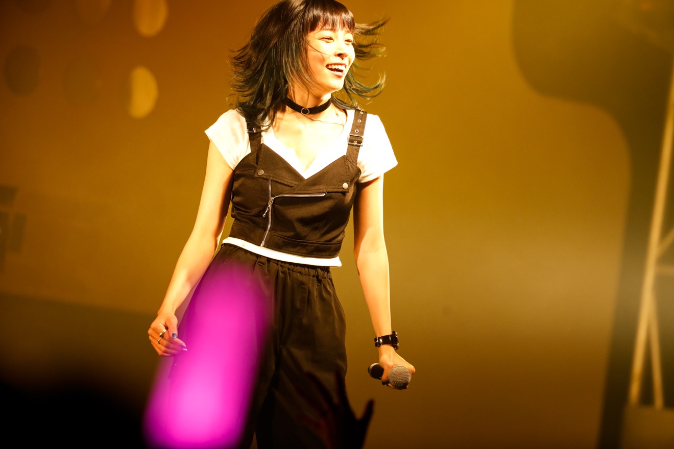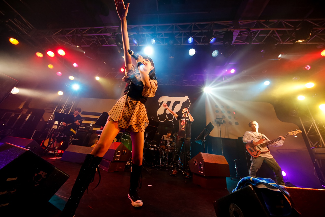 続いて、勢いよくステージに駆け出してきたのはJENNI。「ReD HooD」からキュートかつパワフルなヴォーカルで颯爽と盛り上げ、オーディエンスから「かわいいー!!」の声が飛びまくる。「めっちゃ緊張してる!」と言いながら水を飲み、「Gx3」の歌い出しで音に入りそびれてしまったシーンもご愛嬌。その後は見事に立て直し、「TTJとして初めてのライヴ。待ってたんだよ、この日をずっと!」とイベントの開催をあらためて喜んだ。