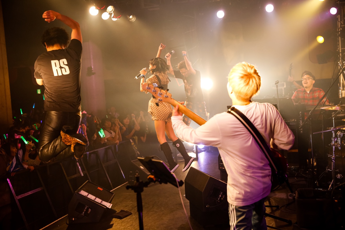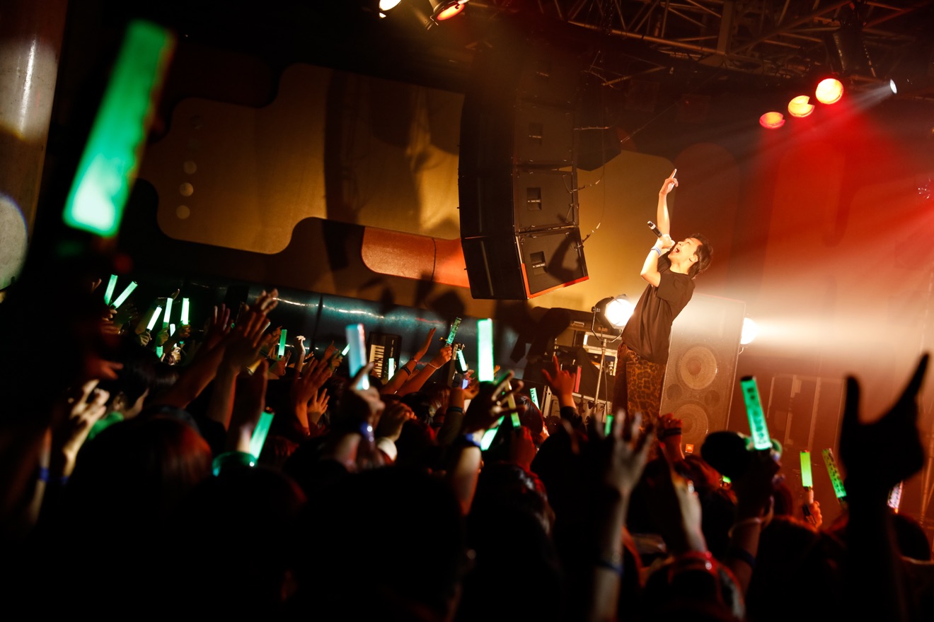 3番手はロックなエンターテイナー、としみつ。オープニングの「スーパースター」からしてギミックなしで勝負していて、すっかり1人のアーティストとして世界観を確立しつつある感じだ。「C.A.K.E」のセリフ部分は「現在彼女はいますけども、虫歯はありません!」と歌い替えて沸かせる。