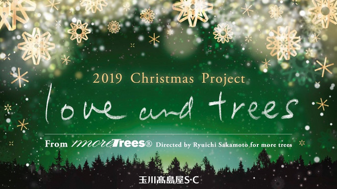 坂本龍一の主宰する森林保全団体「more trees」と玉川高島屋S・Cがコラボしたクリスマスプロジェクト<love and trees>が、11月11日(月)~12月25日(水)、東京・玉川高島屋S・C グランパティオにて開催される。