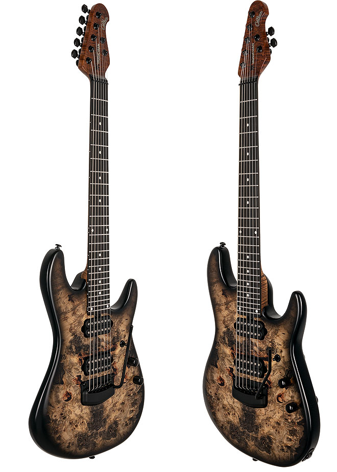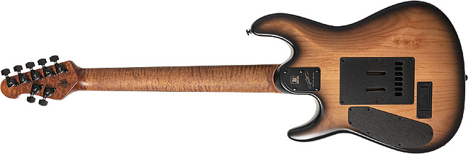 希少材のバックアイ・バールを使用したトップ、ライトウェイト・アルダー・ボディ(サテンフィニッシュ)に、フィギュアド・ローステッド・メイプルのネック、24フレット&ミディアム・ジャンボ・プロファイルのエボニー指板の組み合わせ。Music Man製の7弦用カスタム・フローティング・トレモロ、同じくMusic Man製の7弦用カスタム・ハムバッカー・ピックアップを搭載する。国内販売数は30本限定。
