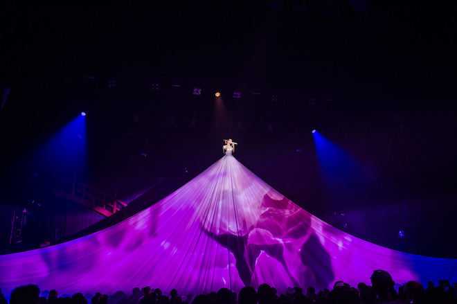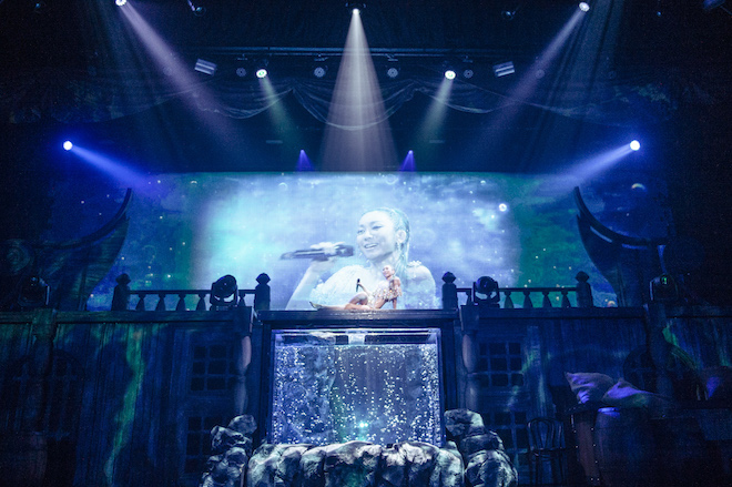 和をテーマとした「JAPONESQUE」では花魁姿で登場。妖艶な姿でステージを練り歩く彼女に会場中から熱視線が注がれた。パイレーツをテーマとした「Black Cherry」ではなんと水中から登場。衝撃的な幕開けに会場はどよめき大きな歓声が湧き起こった。