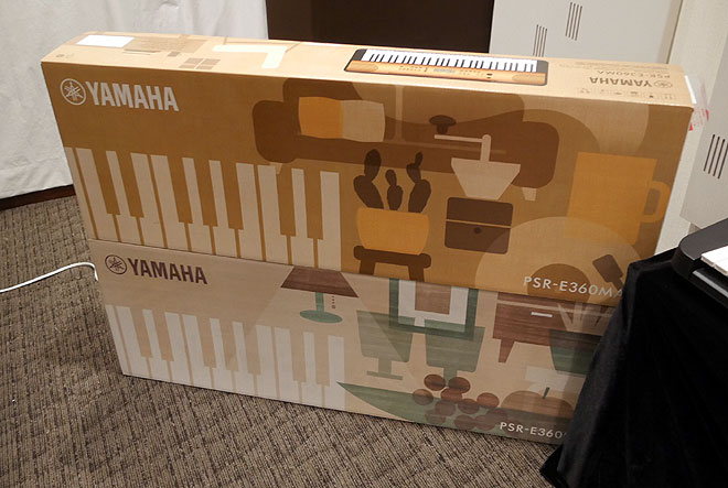 ▲ダークウォルナット調のPSR-E360DW。より木目を生かしたシックな仕上がり。こちらも樹脂製で触り心地はメイプル調と同じ。本体は非常に軽くらくらく持ち運べる。