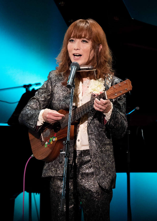 続く第2部では「(1部の衣装の)サイズが合わなくてずっと苦しいステージでしたが(笑)、やっと楽に歌えます。最近は戦前の歌謡曲にはまっていまして、いまマイブームが東海林太郎さんです」と近況を語り、 ギタレレの弾き語りで「旅の夜風」など懐メロを歌ってから、このリサイタルのために結成した“ベルサイユ宮殿”(ギター、クラリネット、アコーディオン、パーカッション)を紹介する。