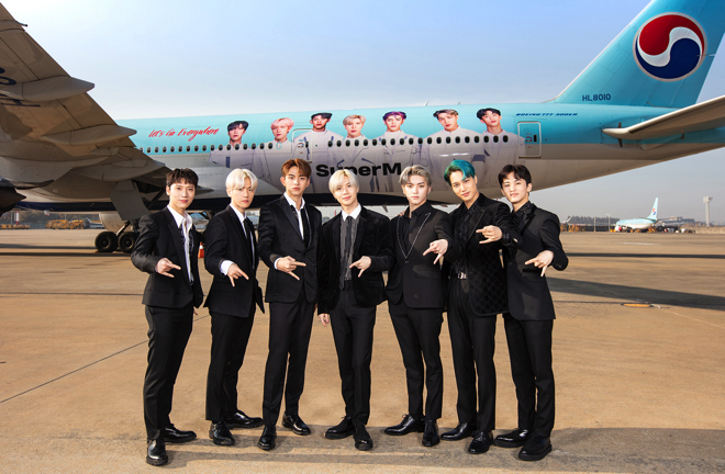 SuperMが大韓航空のグローバルアンバサダーに就任した。これにあわせて、彼らの写真がラッピングされた飛行機も公開されている。
