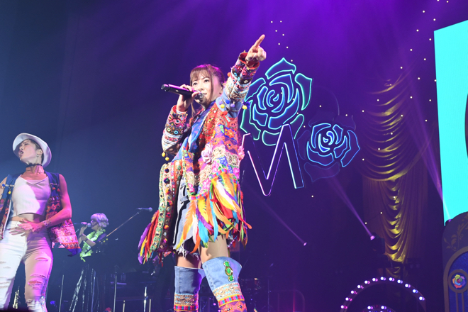 ライブ終盤は、オーディエンスと一体となって盛り上がれるナンバーの応酬となった。ダンサブルなビートに合わせてドレス姿からデニムスカートへと早変わりし、「Let’s Go !」を情熱的に歌唱したかと思えば、ダンサーを従えて軽やかにステップを踏みながら、ストリート感のある「Change」を届けた。