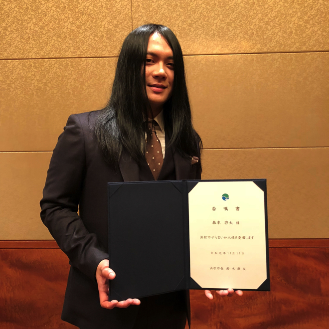 “浜松市やらまいか大使”は、浜松市の魅力を国内外に広く宣伝・PRすることを使命とした親善大使。2005年度から制度が開始され、毎年、各分野で活躍するゆかりの著名人たちが大使に任命されている。2020年度はAMIAYA、イープラスの倉見尚也社長、水谷果穂、水野仁輔、もりもりもとの6人が新たに委嘱された。