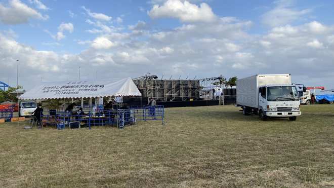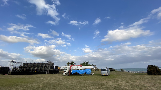 いよいよ明日に迫った<きいやま農園ライブ2019>の開催を目前に、BARKSチームも石垣島へ移動、急ピッチでステージ設営が進められている会場を訪れてみた。