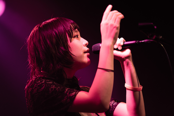テレビアニメ『FAIRY TAIL』のファイナルシリーズ 第3クール エンディングテーマとして親しまれ、2019年11月現在でミュージックビデオが約645万回再生を記録している「僕と君のララバイ」では、切ないピアノの調べとともにドラマティックに歌い上げ、この日いち早く披露されたTHE CHARM PARKと初共作を果たした新曲「color」では、ライブハウスのキャパシティを軽々超えるようなスケールの歌声で圧倒。その後も、ジャジーなピアノと洒脱なリズムに導かれた「缶ビール」では、コール&レスポンスを促すハイボルテージな歌声から、けだるくささやくようなウィスパーボイスまでを縦横無尽に繰り出し、「天上天下」では、「もっとでっかい声を出して暴れていこうぜ!」とハンドマイクでステージを横断しつつも歌詞を間違えてしまい素直に謝る姿もキュートで、これには思わず「最高!(笑)」との声がフロアの各所から上がる。