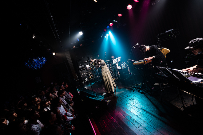 深紅の照明に照らされ熱唱した「ユラレル」から、ハッとするほど艶やかでダークな歌声で一気に楽曲の世界に引き込むみゆなを、柏倉隆史(Dr)、村田シゲ(B)、中村圭作(Key)という名うてのメンバーがしっかり支える。かと思えば「グルグル」では、高音から低音までレンジの広い帯域を軽やかに行き来する歌声を駆使しつつ、メロウなダンスビートを乗りこなすステージングでも魅せるなど、楽曲ごとにまるで同一人物とは思えないほどジャンルも表現方法も目まぐるしくスイッチ。そのどれもが突き抜けているという末恐ろしいポテンシャルを見せつけていく。