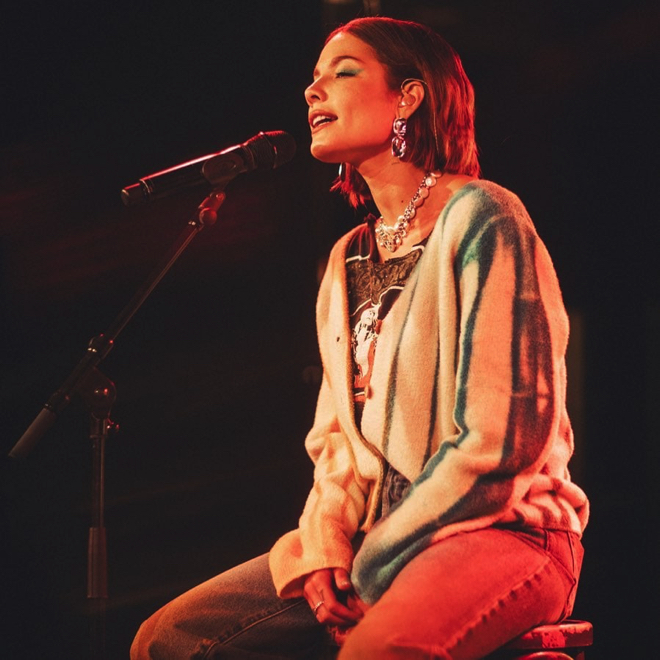 ホールジーは最近、ボーイフレンドで俳優のエヴァン・ピーターズとデート中、ゆったりした服を着ていて、彼が彼女のお腹に手をあてる姿がパパラッチされたことから、妊娠しているようだとの憶測が流れた。
