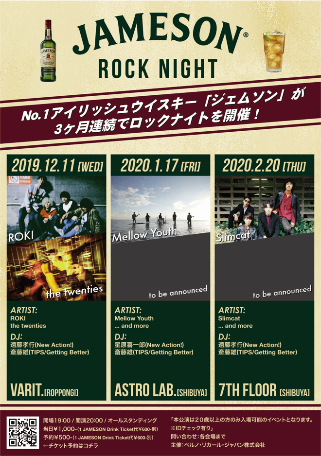 DOOR:1,000YEN(1 JAMESON Drink Ticket代600YEN別)
