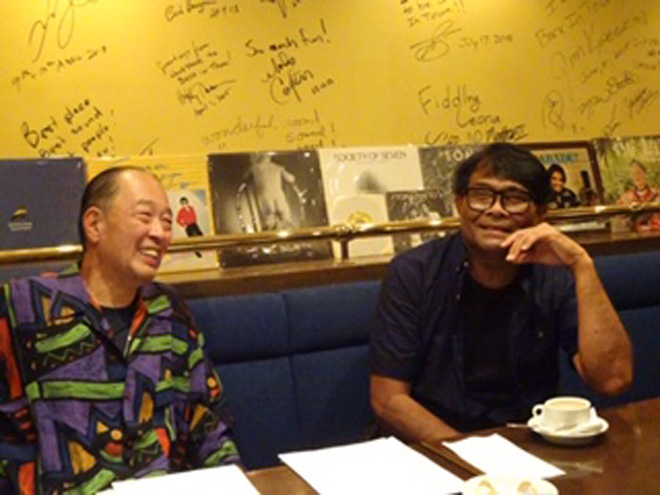 R:デイヴとはさっきも電話で話してたよ。僕には真の友人と呼べる人物が5人いて、彼はそのうちの1人。初めて会ったのは僕が高校生の最後の1974年でした。その年の10月31日に兄が彼を家に連れてきたんだ。デイヴは僕より2歳年上で当時兄と同じバンドで演奏してた。二人で両親が僕ら兄弟のために建ててくれた楽器だらけの音楽部屋にいって一緒にギターを弾いたんだ。以来半年余り、デイヴと毎日のように会ってセッション。そして二人はバンド・メンバー公募に応募してアメリカ中西部を周り、ハワイに戻ってからバンドを結成したんです。バンド名を決めるのも苦労しました。Chapter 2。もうひとつはIlua、ハワイの言葉で2を表します。でもどっちもダメだな。ではToma/Nattoはどうだろうと提案したんです。アメリカ本土では僕の名前をネイトウと発音しますが、ハワイとフィリピンのハーフだった父の名前は、フィリピンではニエトウと言います。それがハワイではナットウ。ただし本土発音だとトマネイトウとなり、トメイトウつまりトマトみたいに聞こえるのです。これが面白いということになり、そこからToma/Nattoが定着していったんだよ。『Zoomin’ Away』、日本でもコンテンポラリー・ハワイアンの名盤として評価されているのはとっても嬉しいです。