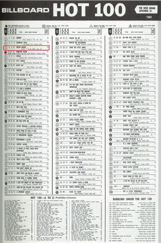 1960年代中期、本格的にR&Bを楽しむようになってモータウンと共に僕は必死になってスタックスの輸入盤アルバムをYAMAHAにオーダーしていた。その中心はオーティス・レディング。そのオーティスのバックも務めていたのがブッカー・T&ザ・MG’s。彼らはスタックス・レコード最初のビッグ・ヒットを放った。1962年発表した「Green Onions」は全米で大ヒット。Billboard誌HOT100で8月11日付90位(★)で初登場、その後65位(★)→48位(★)→40位→22位(★)→5位(★)→4位、9月29日付で最高位3位を記録した。同誌R&Bチャートでは4週ナンバー・ワンに輝き、ゴールド・シングルも獲得。当時日本でもリリースされた(日本ビクター/JET-1172、当時の表記はブーカー・ティーとジ・エムジーズ。僕はジューク・ボックス・シリーズのジャケットの日本盤シングルを64年頃に中古盤でゲット)。
