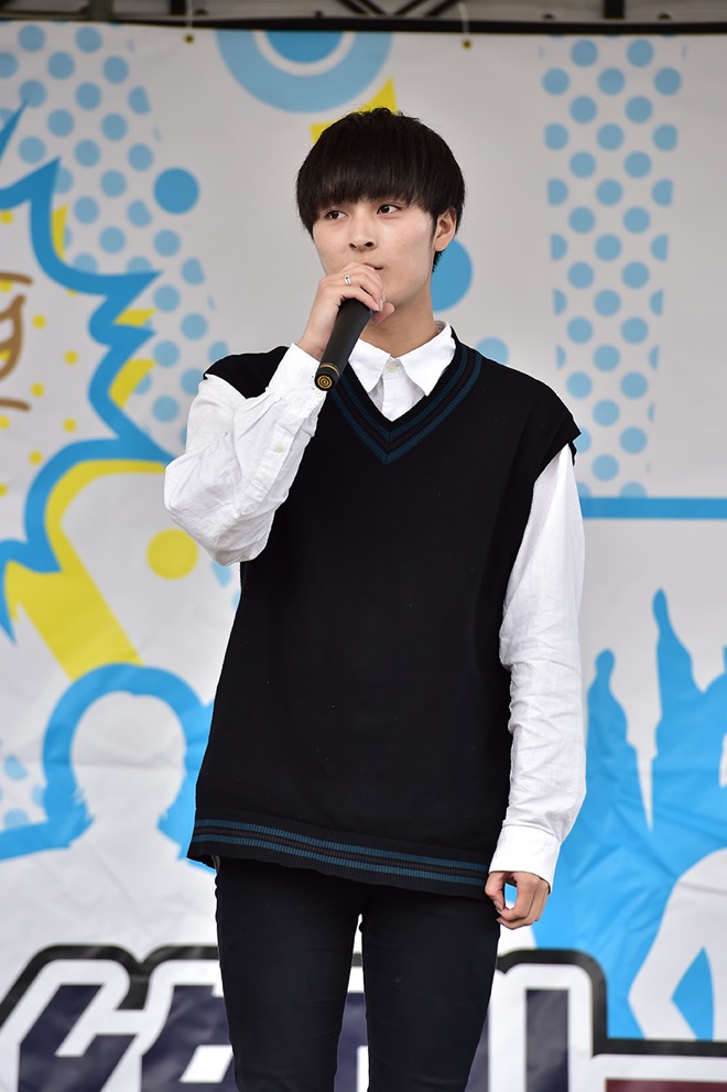 「体力には自信があります。この体格を生かして鉄骨番長らしく頑張っていきたい。富士急ハイランドは小さいお子様もたくさん来ているので、そんな子供たちにも応援してもらえるようなグループになって、さらに富士急ハイランドの良さを伝えていきたい」──小菅銀也 (19)
