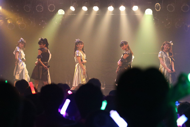 5人体制でのライブも最後ということもあり、メンバー全員が全力で楽しんだこの日。また上田理子は、MCで「ファイナルだから言える見どころ」として、「『崇シ増シ×××物語』の希山(愛)のスカートを綺麗になびかせ、操るところ」と説明。即興で希山が再現し、さらにメンバー全員でスカートをなびかせて会場を盛り上げた。またアンコールでは、本公演限定でインディーズ時代の人気曲「夢のキャンバス」も披露した。