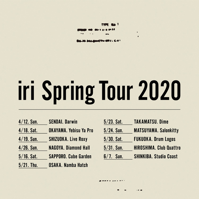 なお、2020年4月からは自身最大規模のツアー<iri Spring Tour 2020>が控えている。