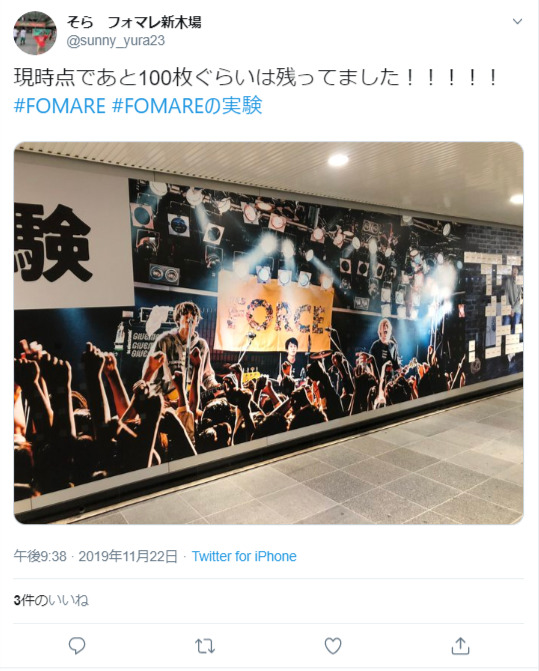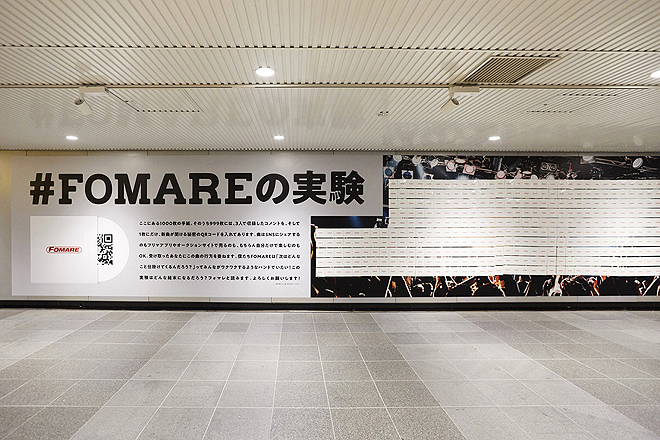 実施当日は、FOMAREのワンマンライブが新木場スタジオコーストで行われ、新メンバーのオグラユウタの加入も電撃発表された。そして渋谷では、人通りの多いスペースでの実験ということもあり、突如張り出された1000枚の手紙に忙しなく移動する人々も振り返ったり、立ち止まり“FOMARE”を検索する人も多かった。ライブ後に駆け付けたファンの反響も手伝い、1000枚の手紙は情報告知解禁後1時間を待たずに全てが剥がされ、新メンバーのオグラユウタの加入後の新アーティスト写真が露わに。SNSは、“加入待ってました!おめでとう!!”といった喜びの声で溢れた。