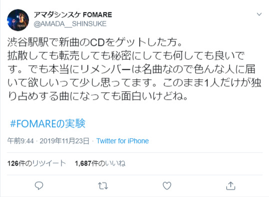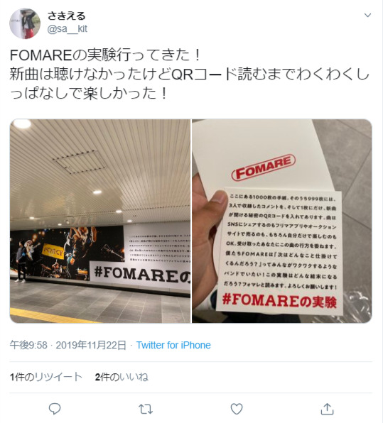 ゲリラ新曲配布企画「#FOMAREの実験」にファン殺到