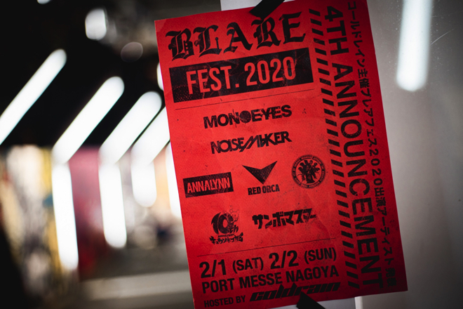 2月1日(土)、2日(日)に愛知・ポートメッセなごやで開催される<HOSTED BY coldrain BLARE FEST.2020>の出演者の第四弾発表が行なわれた。