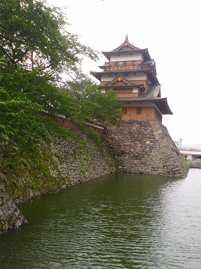 城の東側、いわゆる陸側に城下町を配置。と言っても基本は大手周辺からを城下町としている。現在の高島の街は江戸時代からの名残をそのままに伝えているのが素晴らしい。天守の最上階からそれが見て取れる。天守の周りにたくさんのビルや観光ホテル、旅館などが建っているがこれが当時はなくて、天守閣だけが湖の先に見えていたとしたら、考えただけでもナイスセンスだ。「THAT IS A TEMPLE? OR CASTLE?」「YES!キャッスル!キャッスル〜!」まさに、だ。