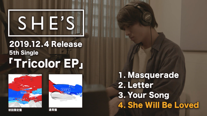 なお、「Tricolor EP」の購入者を対象に、全国ワンマンツアー<SHE’S Tour 2020>のチケット先行受付が実施されることも決定している。形態を問わず、すべてのCDパッケージに応募シリアルナンバーが封入される。