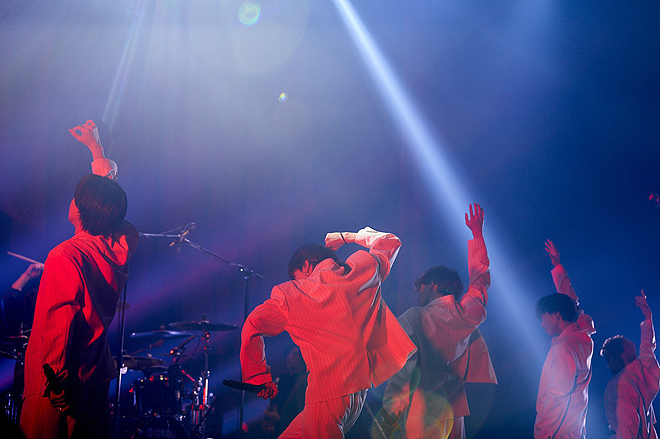 TATSUKIから「生バンドも今日だけの特別なんだけど、更に1つアレンジを加えてみます!」と告げられると、マイクスタンドが5本登場。メンバーが横並びにスタンドを使いながらダンスするスペシャルver.の「Showstoppaz」を披露し、観客はその紳士的なパフォーマンスに歓声を上げた。