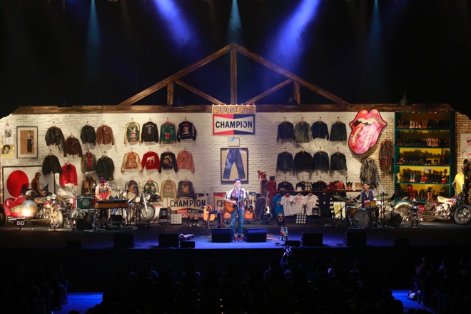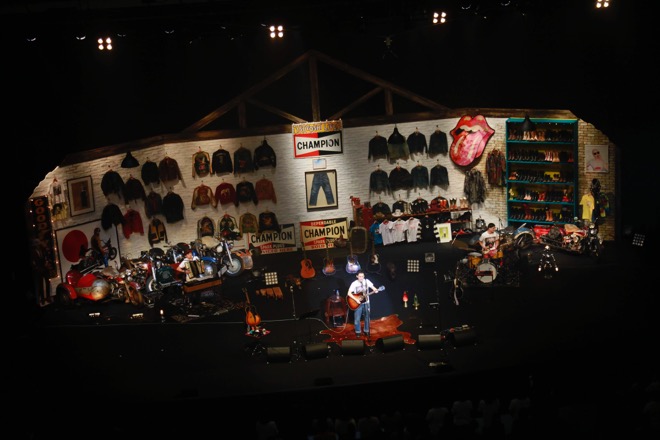 二日間だけの特別な夜。楽曲はもちろんのこと、実はスペシャルなものがもうひとつ。それがステージセットだ。バイク、スカジャン、デニム、ブーツ……ステージに置かれた大量のビンテージアイテムは全て本人の私物。その総額、なんと2億円!