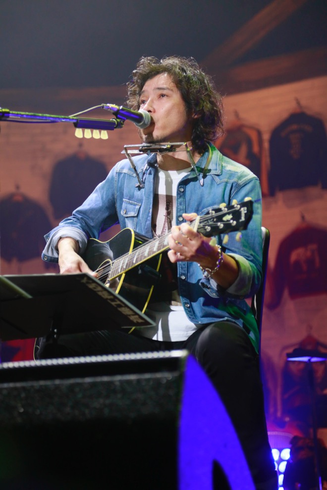 和田唱をギターの道を導いてくれる師と仰ぎ『ギブソン』をもじり『ワダソン』と呼んでいるエピソードを披露。奥田民生には「聞きたいことが沢山あるんです」と舞台上で質問攻めに。曲になかなか進めない事態に陥り会場が爆笑に包まれる場面も。そして、田島貴男の凄さを熱く語り、斉藤和義への愛を語り、ギターとレジェント達への思いがMCでも爆発。結果、本当は舞台袖にハケるはずだった“レジェンドタイム”も真後ろの特等席にちゃっかり座り観賞することに。「多分、この会場で今一番楽しんでいるのは僕だと思います」と笑った。