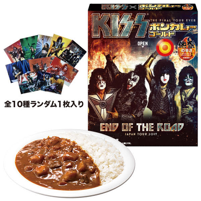 現在ファイナル・ツアー<END OF THE ROAD WORLD TOUR>を行なっているKISSだが、12月8日(日)からいよいよ<KISS END OF THE ROAD WORLD TOUR>日本公演がスタートするにあたり、KISSとボンカレーゴールドがコラボした「地獄の辛さのボンカレー(トレカ付)」がオフィシャルグッズとして販売されることが発表された。