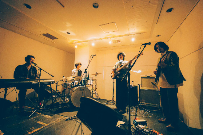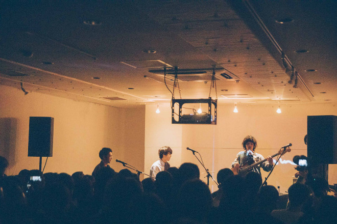 MCでは「東京では初めてのイベントなので」と、改めての自己紹介があり、中学時代にサッカークラブのチームメイトだった荒谷と斉藤の出会いから、高校の同級生だった田中と野元を斉藤が荒谷に紹介、友人関係の延長でこの4人のバンドが始まったというエピソードが語られる。続いて演奏されたのは1st EP『ijo』から「しあわせ」と「ijo」。R&B、AOR、ジャズといった要素を感じさせつつ、そのチルな雰囲気はまだ20代前半のバンドとは思えない。音源をiPadで作るなどの現代的な側面の一方で、ライブはあくまで生のグルーヴを重視しているのも面白い。