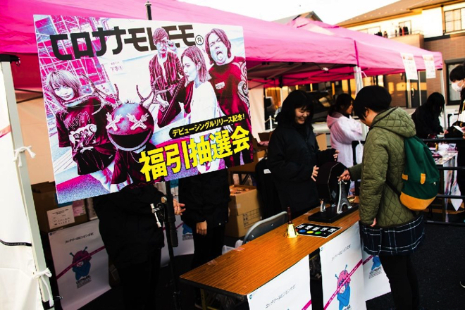 マキシマム ザ ホルモン2号店ことコロナナモレモモが11月30日、デビューシングル「恋のメガラバ / 包丁・ハサミ・カッター・ナイフ・ドス・キリ(正式表記は各単語に×表記)」のリリースを記念したワンマンイベント<コロナナモレモモ デビューシングル発売記念!ホーム栃木で無料ミニマム ザ ライブ & 福引抽選会>を栃木・岩下の新生姜ミュージアムで開催した。